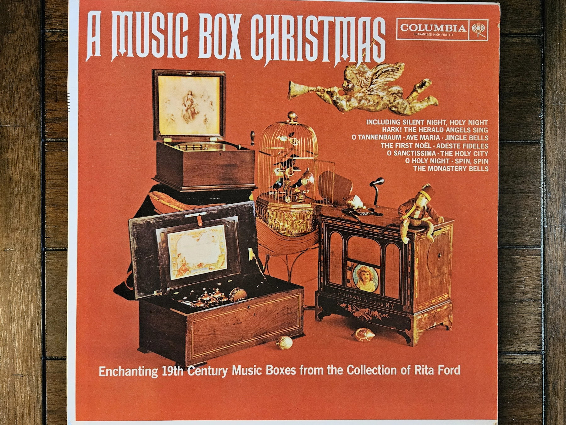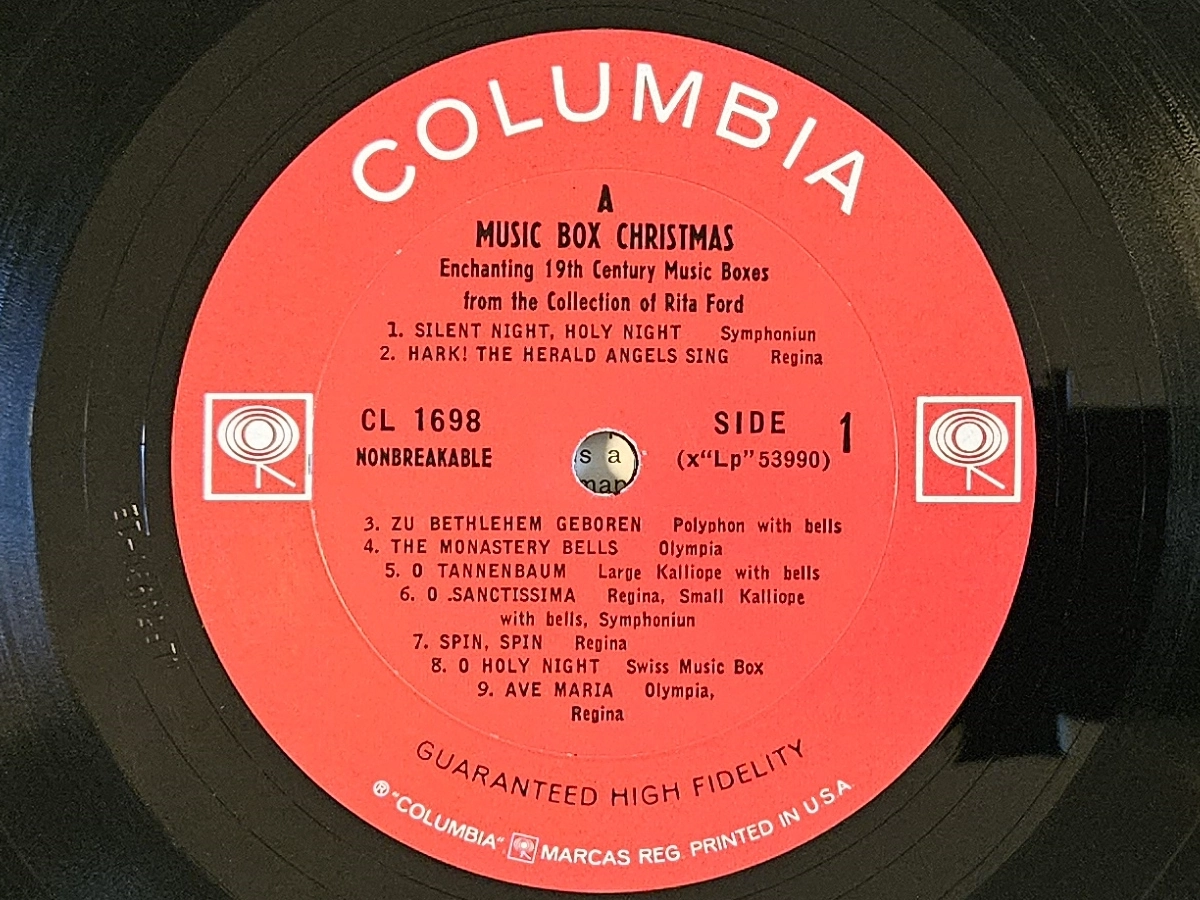 This 1961 album is the first in a series of releases from Rita Ford Music Boxes that continued through the late 1980’s, all recordings of antique music boxes. The series contains two other Christmas albums, The Story of Christmas (1968) and A Christmas Tree - A Collection of Enchanting Music Box Melodies (1985).